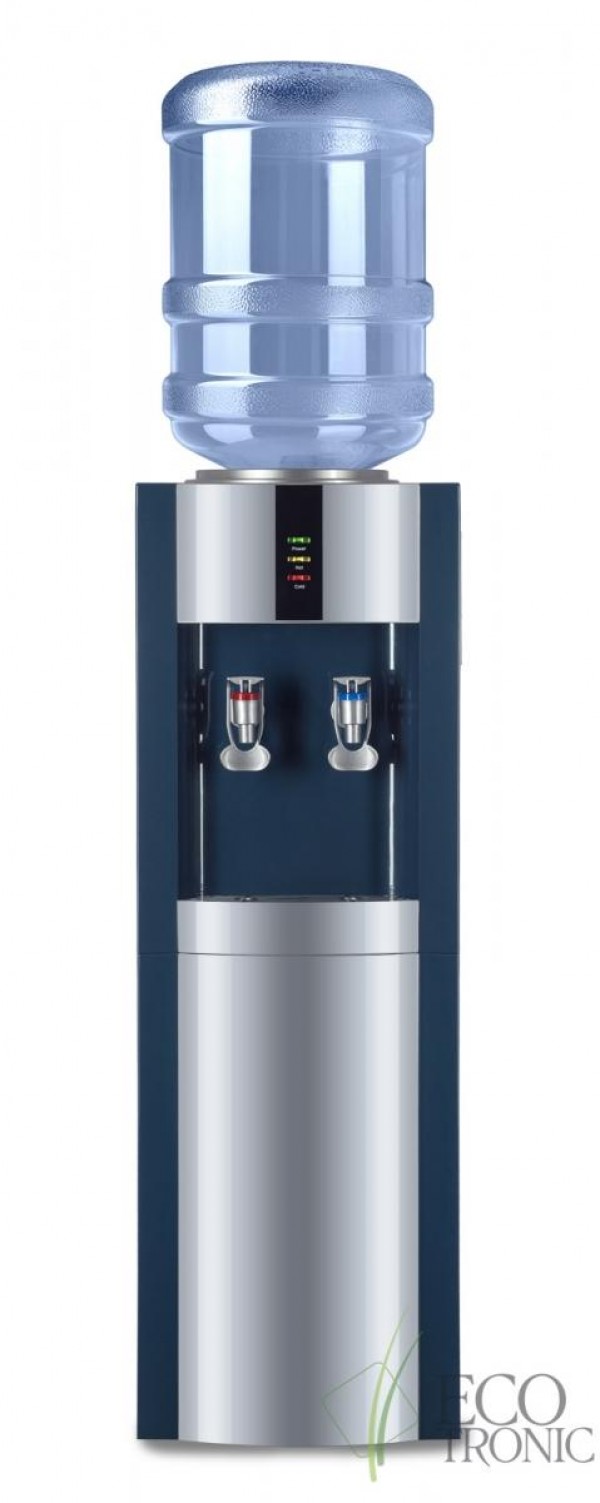 Кулер V21-L black-silver. Напольный кулер с компрессорным охлаждением. Тип кранов подачи воды - "Нажим кружкой".